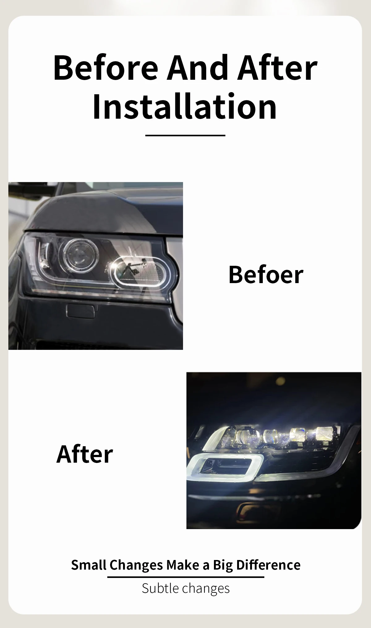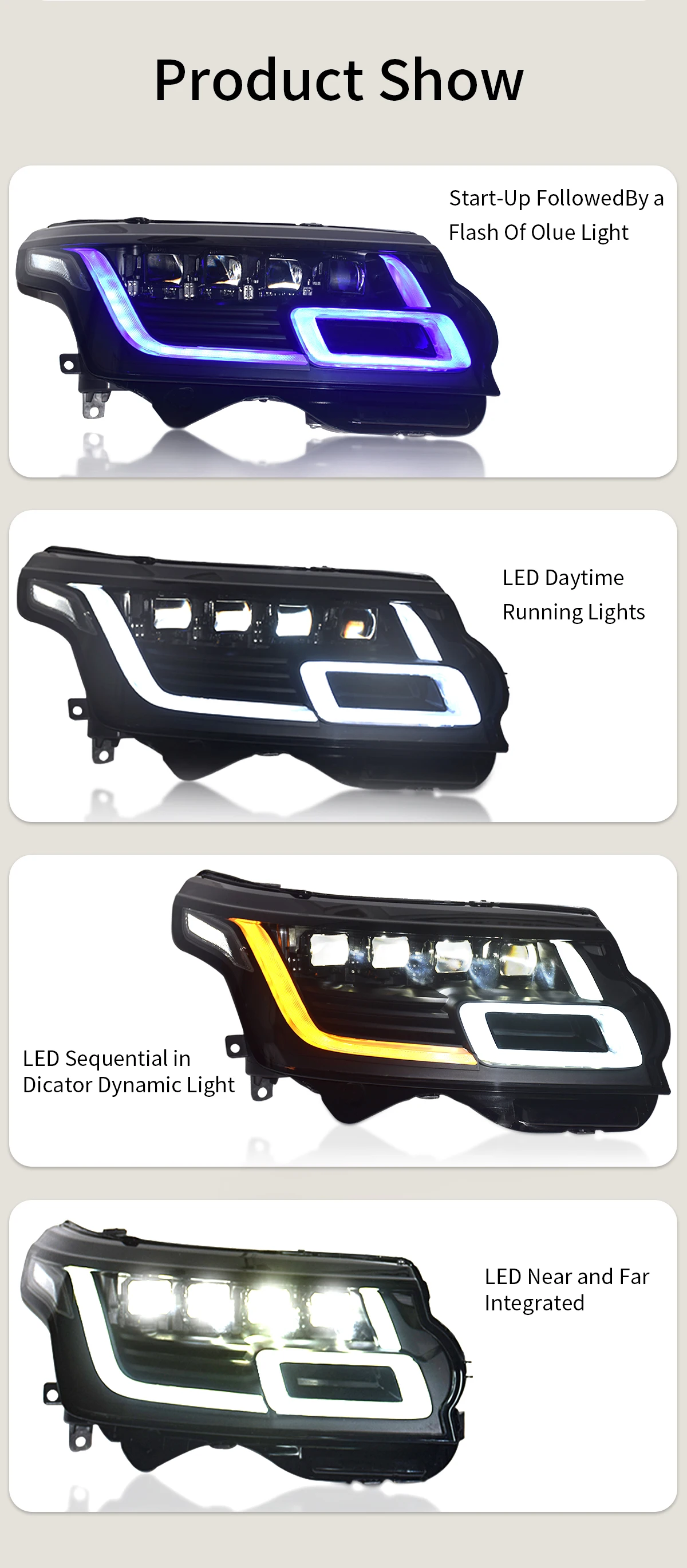 FELENDO New Product 2018-2022 Style Upgrade Front Light Range a Rover Vogue L405 2013-2017 Retrofit 4 LENS LED Retrofit Plug &Play Headlight Range a Rover Vogue L405 2013 – Spare Parts Car Accessories Factory Wholesaler(NO NEED CHANGE BODY KIT BUMPER) Product Name Range a Rover L405 2013-2022 Retrofit LED Headlight Application  Land a Rover Range…